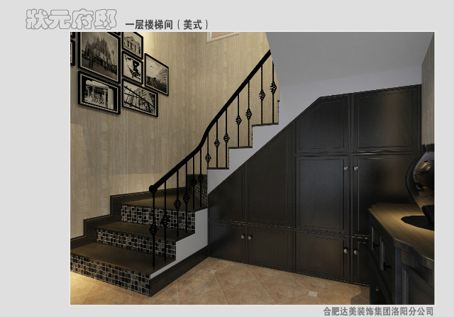 状元府邸样板间——豪华美式装修一层楼梯间效果图